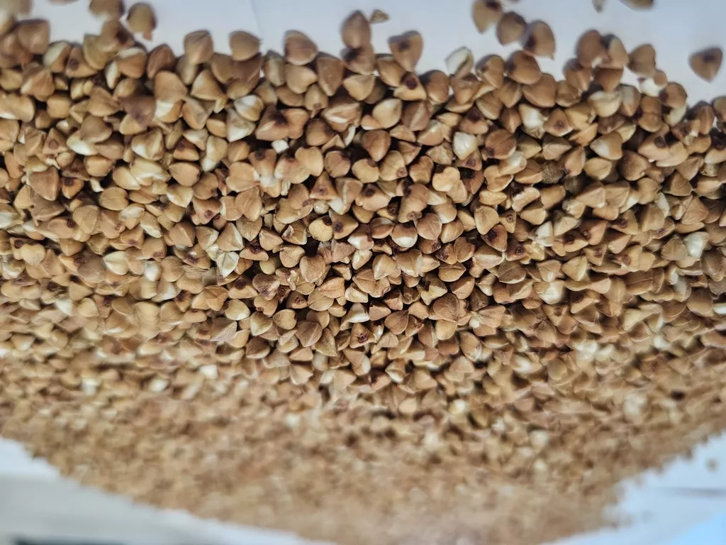 Показатели гречневой крупы: ГОСТ 5550-2021, высший сорт, ядро доброкачественное 99% мин, мучка не более 0,15%, испорченные ядра 0,2% максимум.